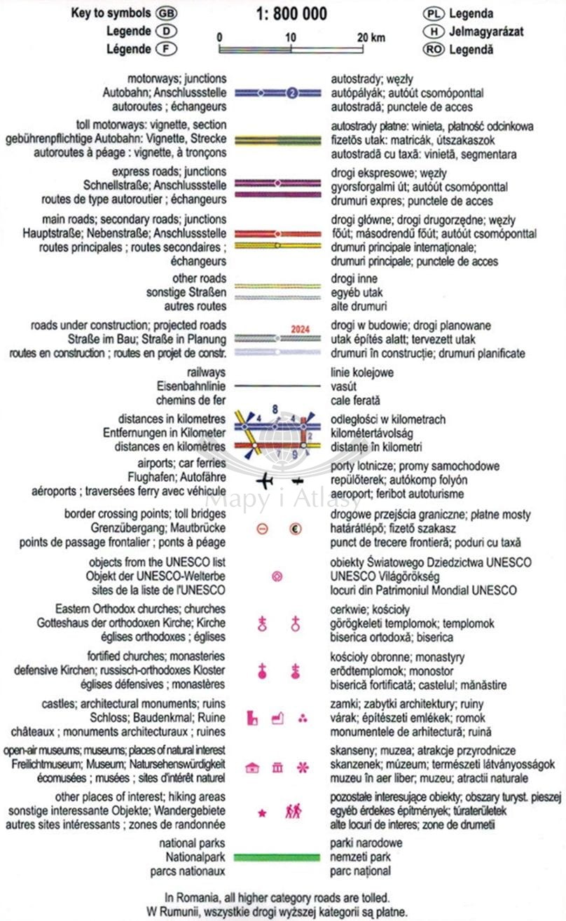 Legenda w języku: polskim, angielskim, niemieckim, francuskim, włoskim oraz rumuńskim.