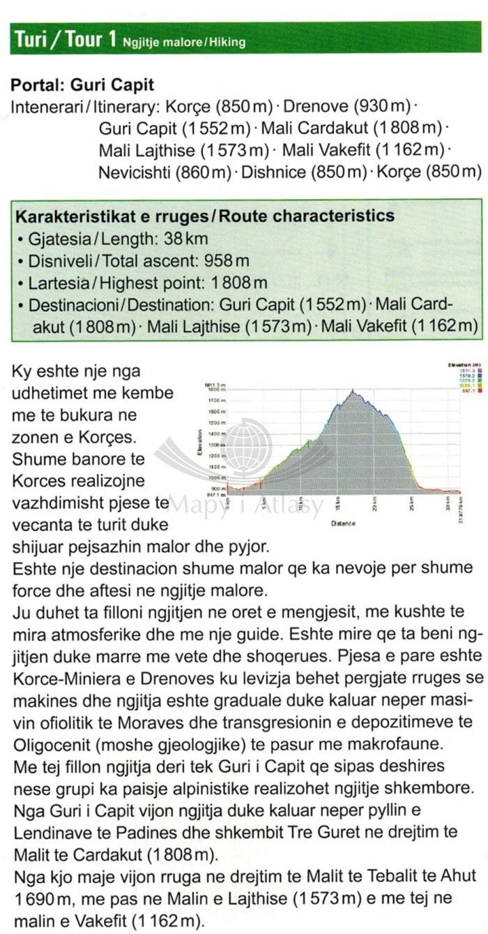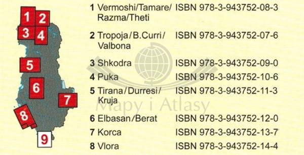 Na rewersie mapy znajduje się obszerny informator turystyczny w języku angielskim i albańskim.