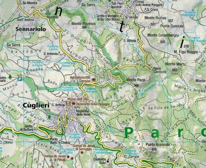 - miejscowości: Ozieri, Siniscola, Orosei, Tortoli, Tertenia, Senorbi, Laconi, Oristono, Cuglieri, Bolotana.