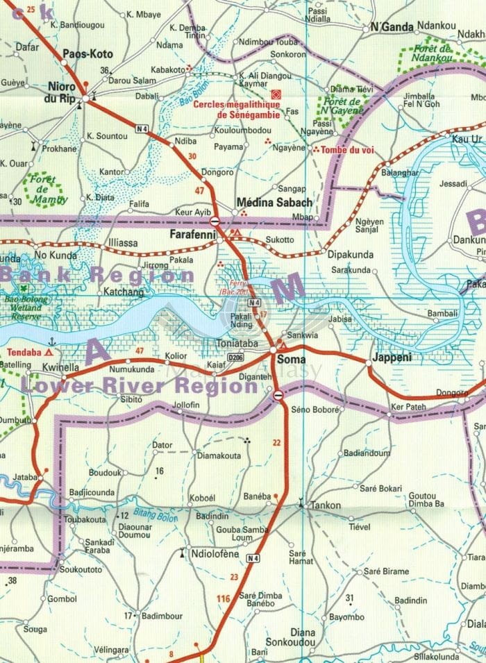 Składana, wodoodporna mapa Senegalu i Gambii w skali 1:550 000 wydawnictwa Reise Know-How.
