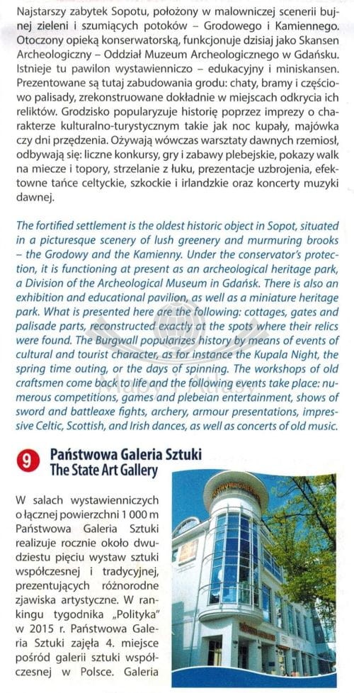 Publikacja zawiera dodatkowo powiększony plan centrum Sopotu. Na rewersie mapy znajduje się informator z opisami zaznaczonych na mapie atrakcji.