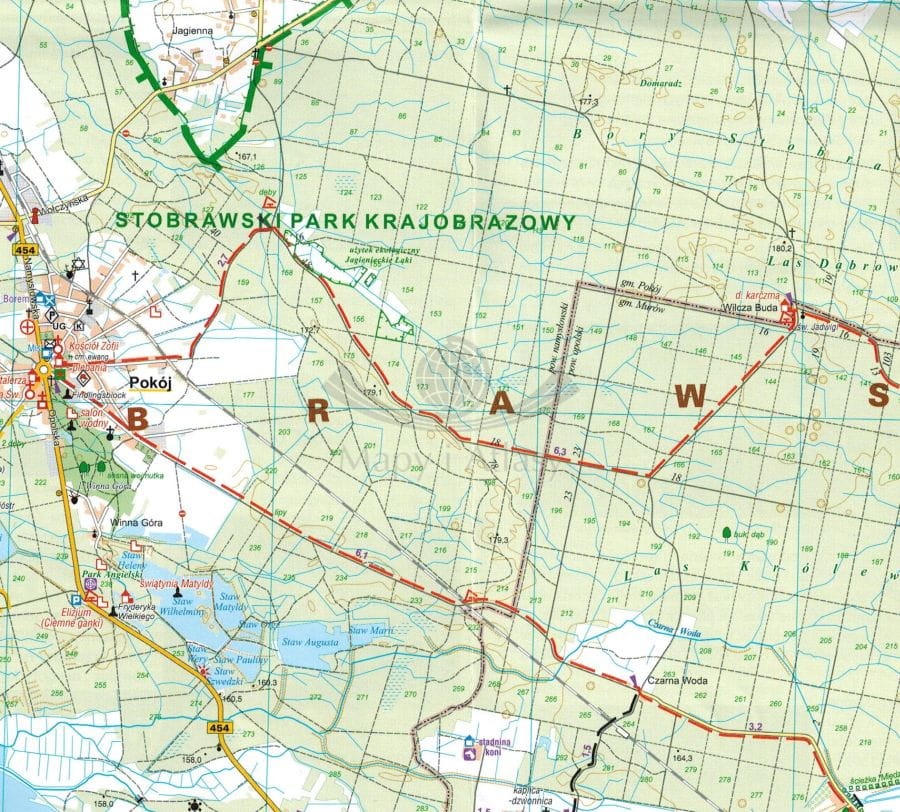 Obejmuje swym zasięgiem obszar ograniczony od południowego-wschodu Jeziorem Turawskim, od północy sięga po Wołczyn, natomiast od wschodu po Brzeg. Treść mapy zawiera informację bardzo przydatną turyście podczas wszelkiego rodzaju wycieczek.