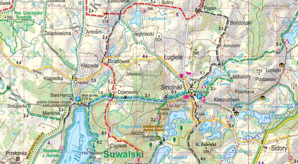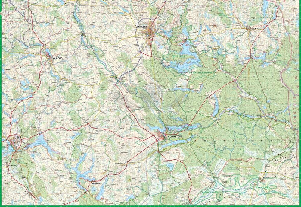Składana, foliowana mapa turystyczna Suwalszczyzny w skali 1:85 000 wydawnictwa ExpressMap.