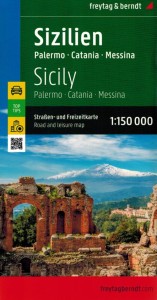 Składana, dwustronna mapa samochodowa Sycylii oraz Palermo - Catania - Messinaw skali 1:150 000 wydawnictwa Freytag & Berndt.