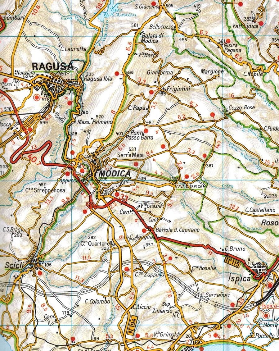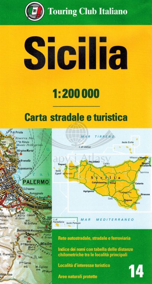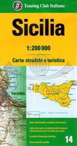 Składana, jednostronna mapa samochodowa Sycylii w skali 1:200 000 wydawnictwa Touring Club Italiano.