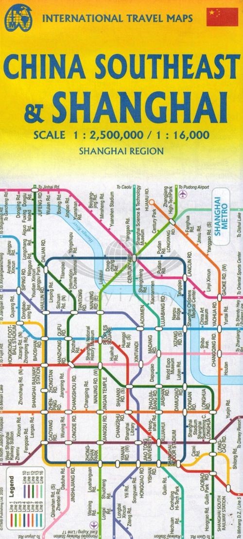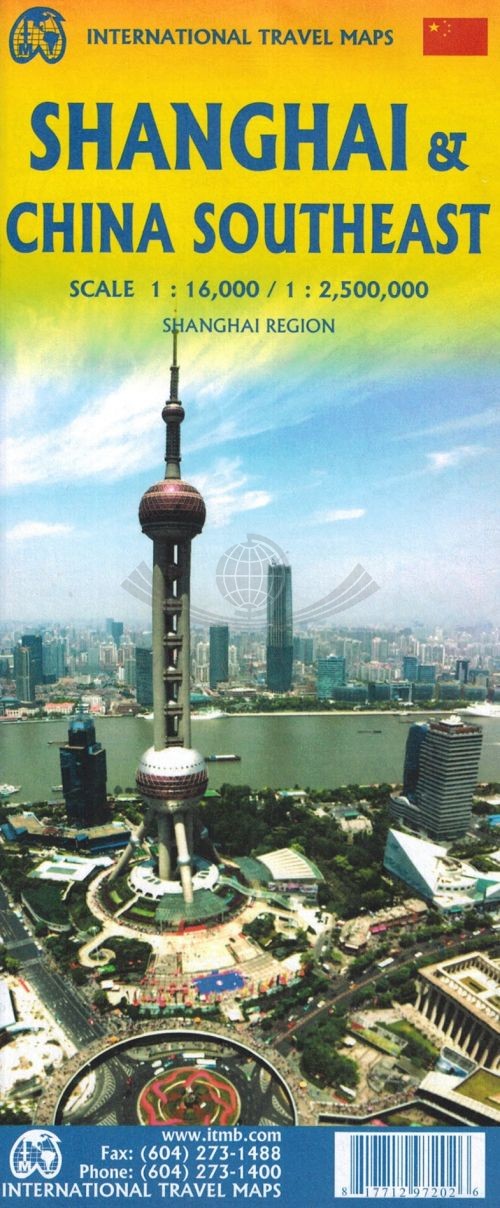 Wodoodporny, składany plan miasta Szanghaju w skali 1:16 000 oraz mapa samochodowa południowo-wschodnich Chin w skali 1:2 500 000 wydawnictwa ITMB.