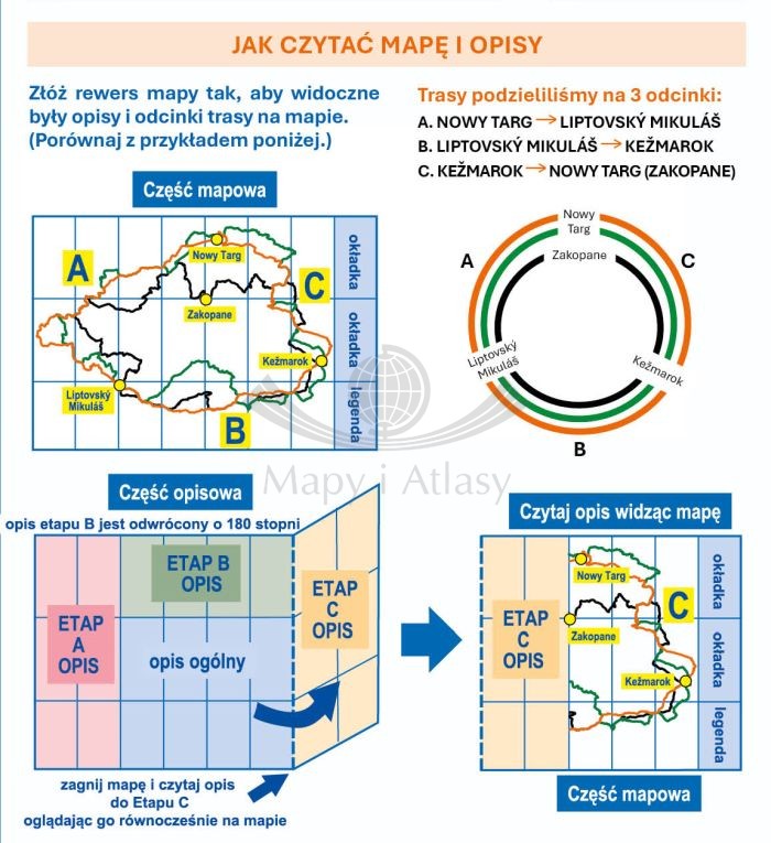 - dużą, przejrzystą mapę obejmującą cały obszar wokół Tatr,