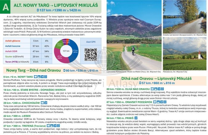 - trzy trasy z opisami, profilami wysokości i kilometrażem,
