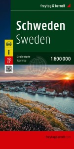 Składana, dwustronna mapa samochodowo-turystyczna Szwecji w skali 1:600 000 wydawnictwa Freytag & Berndt.