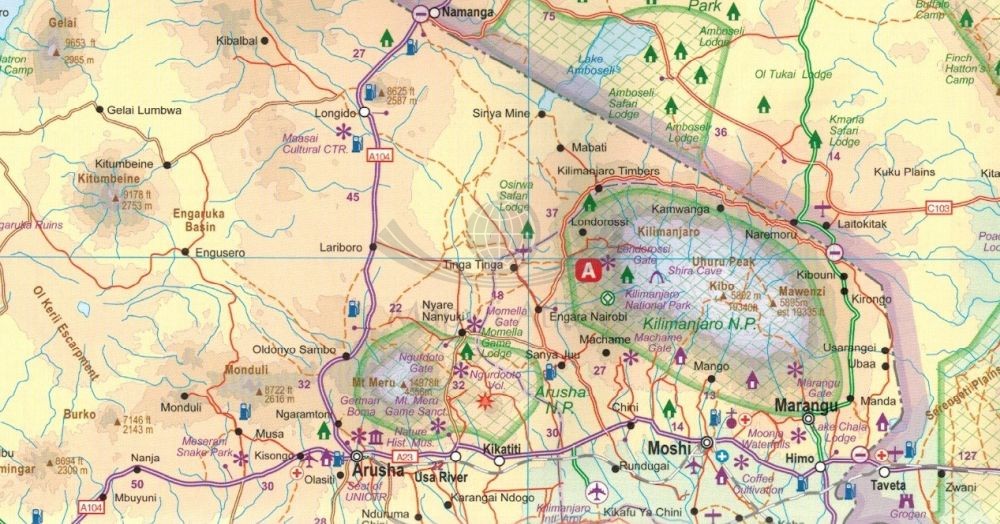 Składana, dwustronna, wodoodporna mapa samochodowo-turystyczna Tanzanii w skali 1:1 300 000 wydawnictwa ITMB.