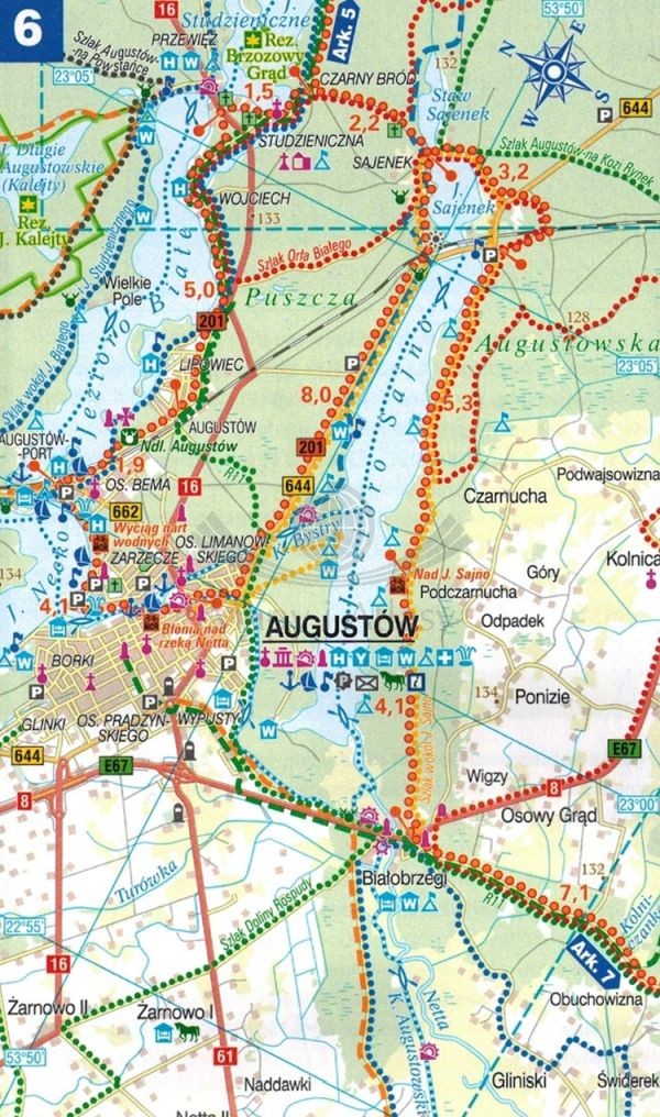 Województwo podlaskie, część północna. Mapa turystyczna tras rowerowych. Nie tylko Green Velo. Euro Pilot