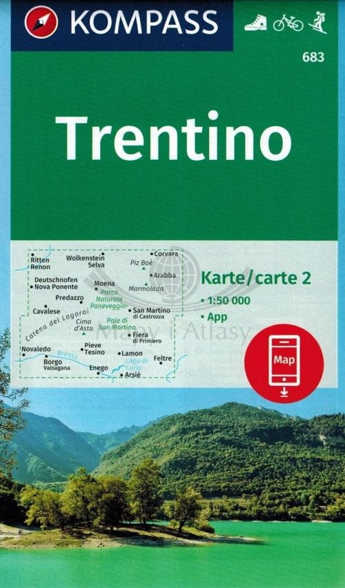 Trentino / Trydent i okolice. Zestaw trzech map turystycznych 683. Wyd. 2025. Kompass