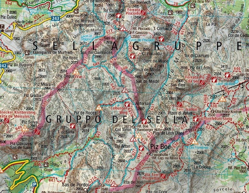 - szczyty: Cima Presanella, Adamello, Ortler, Piz Boe, Marmolada, Cima d'Asta, Pasubio.