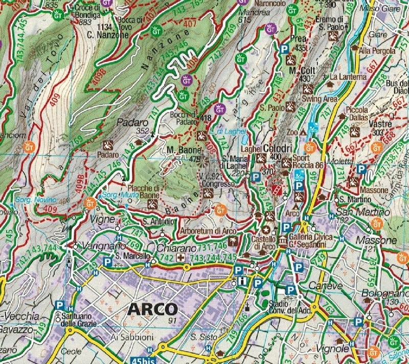 - miasta: Trento, Bozen, Mezzolombardo, Moena, Cavalese, Fiera di Primiero, Feltre, Caldonazzo, Rovereto, Riva del Garda, Stenico, Molveno, Peio, Laurein,