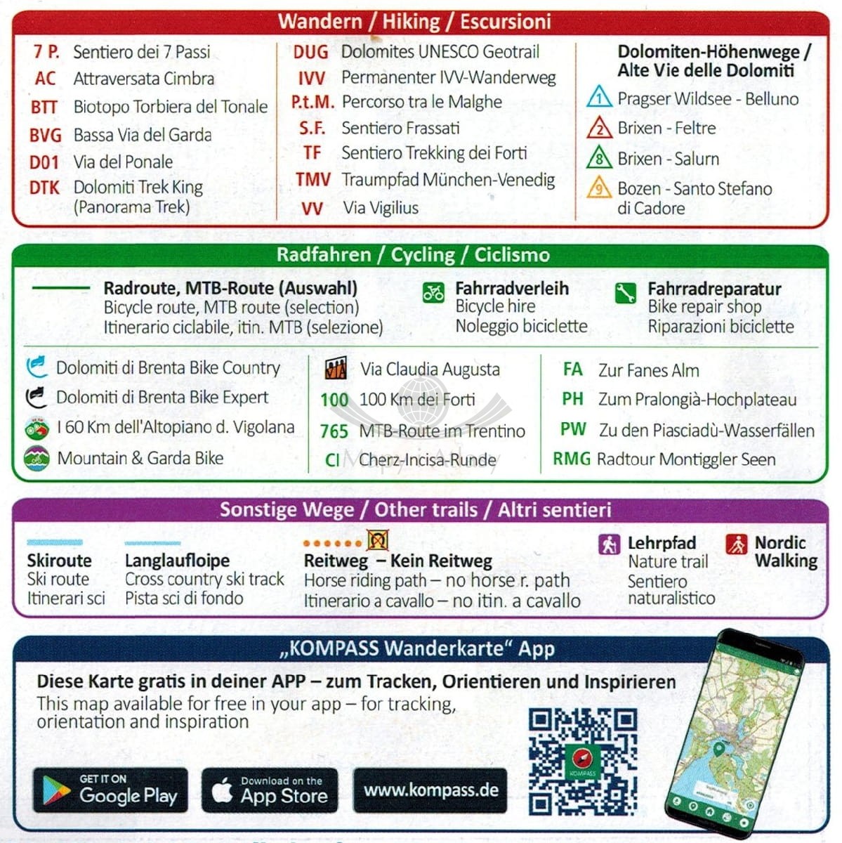 Zestaw trzech składanych, dwustronnych, map turystycznych okolic Trydentu w skali 1:50 000 wydawnictwa Kompass.