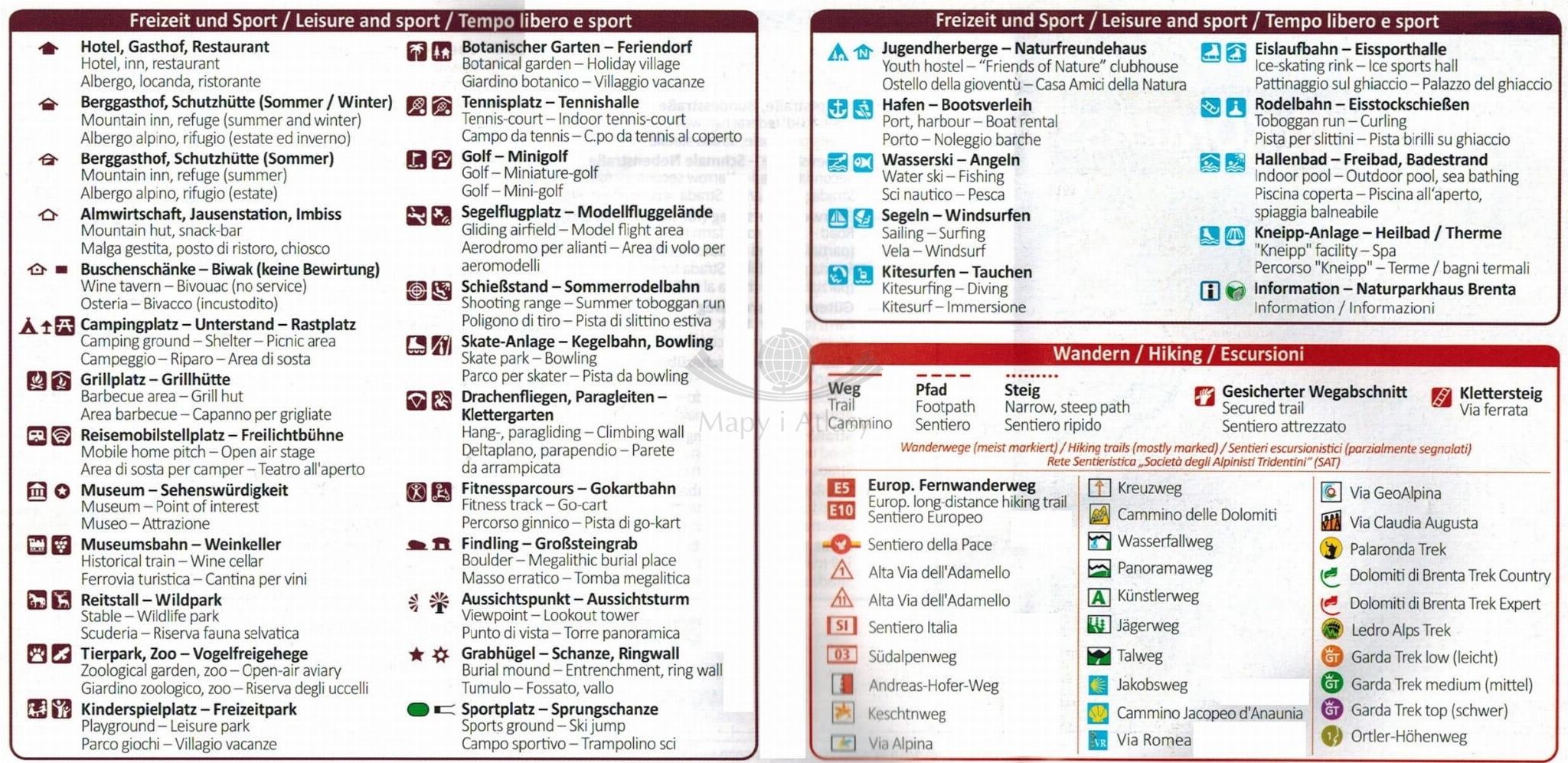 Legenda w języku angielskim, niemieckim oraz włoskim.