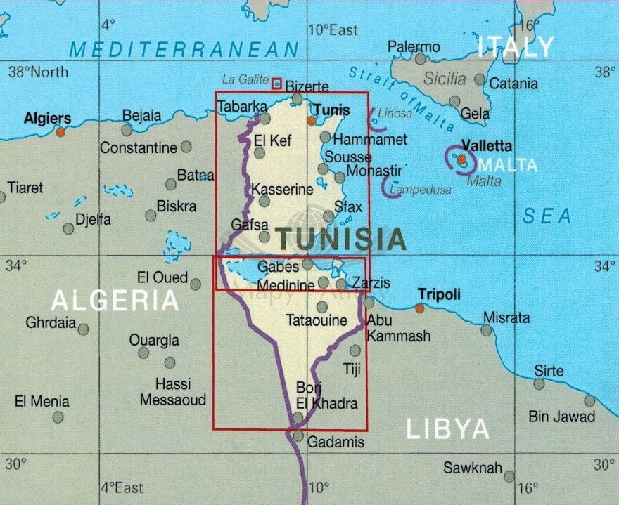 Składna, dwustronna, wodoodporna mapa Tunezji w skali 1:600 000 wydawnictwa Reise Know-How.