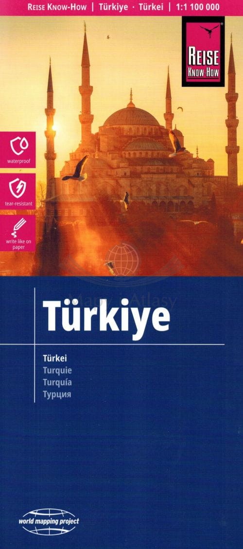 Składana, dwustronna, wodoodporna mapa samochodowo-turystyczna Turcji w skali 1:1 100 000 wydawnictwa Reise Know-How.