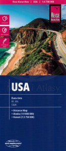 Składana, dwustronna, wodoodporna mapa samochodowo-turystyczna USA w skali 1:4 700 000 wydawnictwa Reise Know-How.