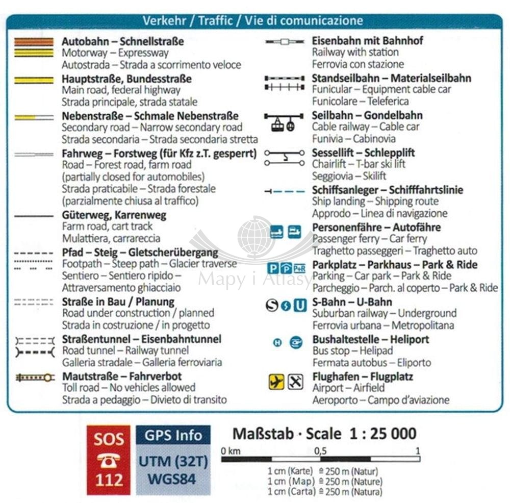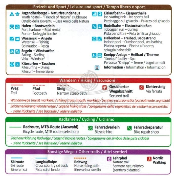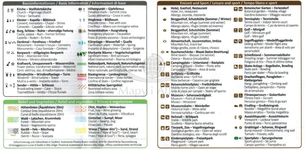 Legenda w języku niemieckim, włoskim oraz angielskim.