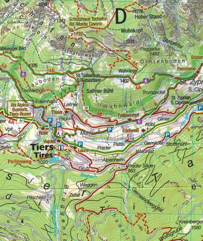 - miejscowości: Wolkenstein, Corvara, Arabba, Canazei, Mazzin, Vigo, Canale, Falcade, Moena, Welschnofen Nova levante, Tiers, Vols,