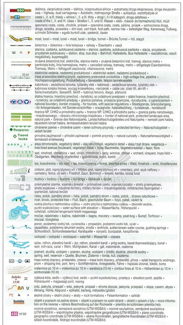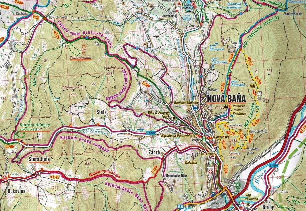 Na mapie widoczne ukształtowanie terenu. Zaznaczono szlaki piesze i rowerowe wraz z czasami przejść. Legenda również w języku polskim. Na odwrocie zdjęcia i krótki opis (w języku słowackim) ciekawych miejsc, obiektów oraz panoramiczna mapka terenu. Mapa zgodna z GPS.