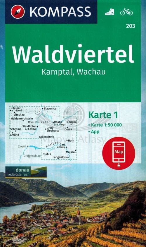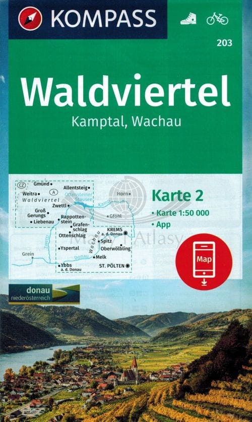 Waldviertel, Kamptal, Wachau. Zestaw dwóch map turystycznych 203. Kompass