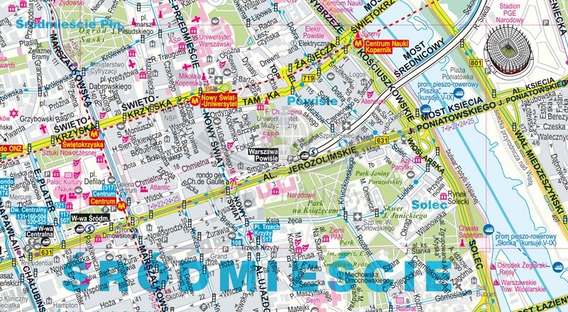 Spacer po Łazienkach, wizyta w Zamku Królewskim, mecz na Stadionie Narodowym – z kieszonkowym planem centralnych dzielnic Warszawy bez trudu trafisz w wyznaczone miejsce. Publikacja jest dwustronnie laminowana, wyjątkowo trwała i wygodna w składaniu.