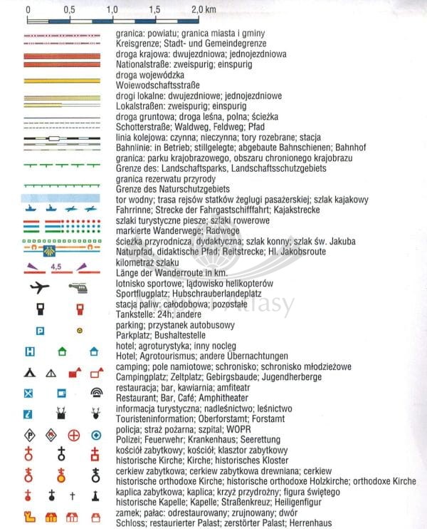 Mapa jest również przydatna dla pozostałych turystów. Naniesiono na niej szlaki piesze, rowerowe, konne, kajakowe i ścieżki dydaktyczne, formy ochrony przyrody, wybraną bazę noclegową i gastronomiczną, najważniejsze atrakcje turystyczne.