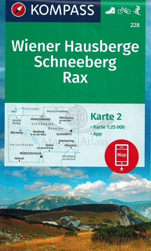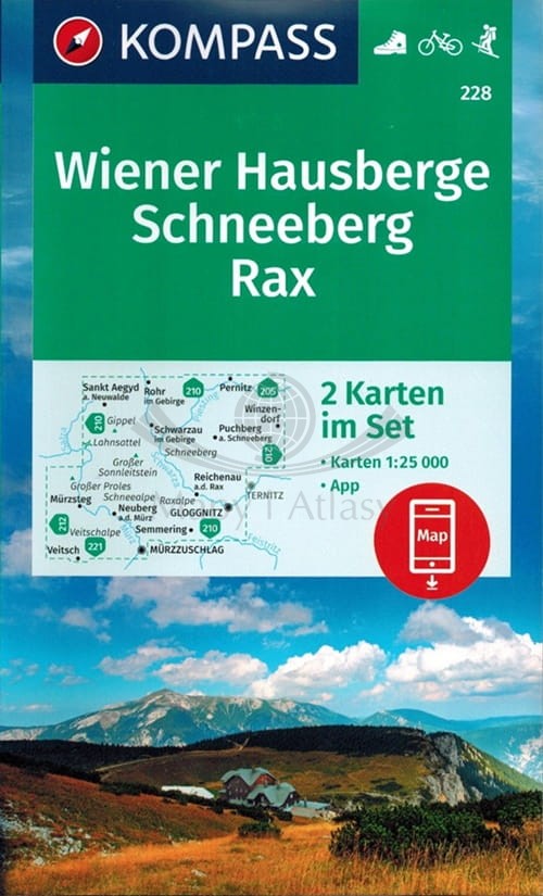 Wiener Hausberge, Schneeberg, Raxalpe, Gutensteiner Alpen. Zestaw dwóch map turystycznych 228. Kompass