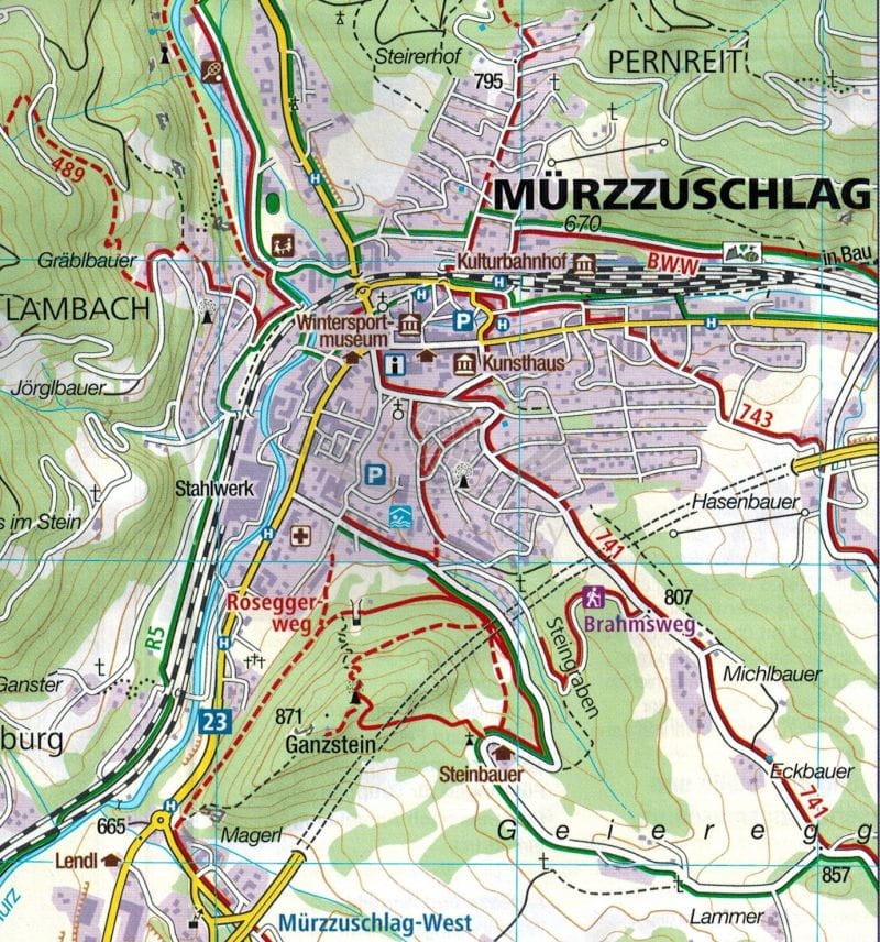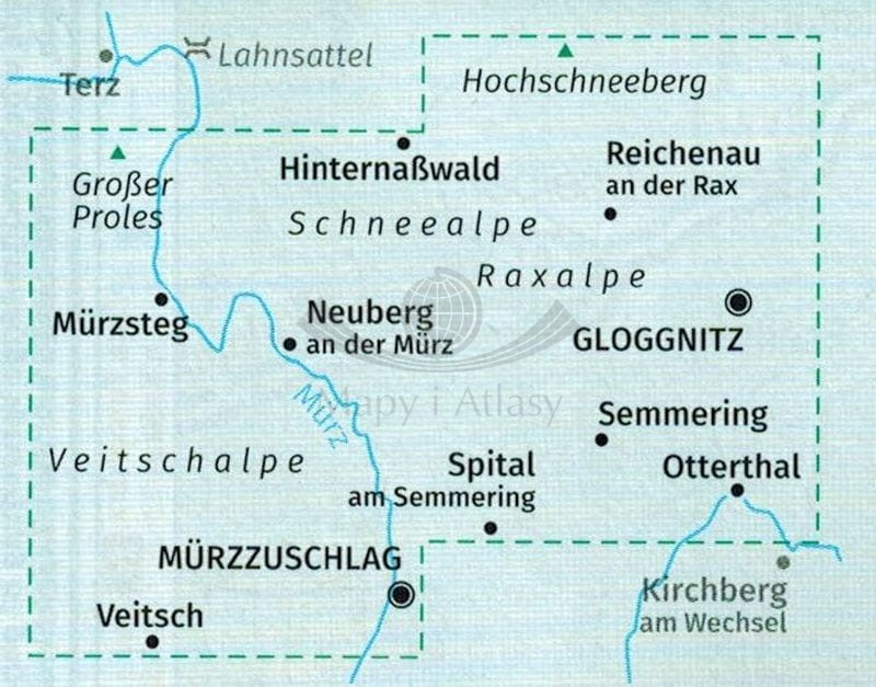 - miasta: Rohr im. Gebirge, Pernitz, Waldegg, Sankt Aegyd am Neuwalde, Kernhof, Schwarzau i. Gebirge, Puchberg am Schneeberg, Grunbach am Schneeberg, Wurlach, HinternaBwald, Reichenaun an der Rax, Murzsteg, Neuberg an der Murz, Gloggnitz, Murzzuschlag, Semmering, Otterthal, Spital am Semmeing, Veitsch,