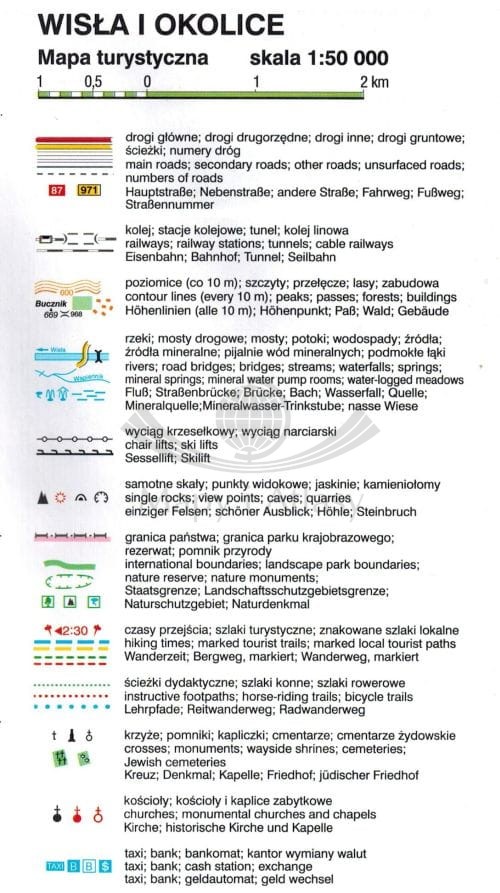 Składana mapa turystyczna Wisły i okolic w skali 1:50 000 wydawnictwa WiT.