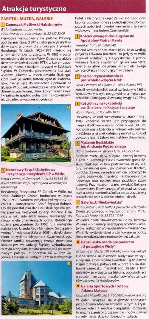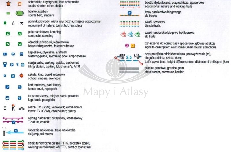- informacje teleadresowe (schroniska, wybrana baza gastronomiczna, atrakcje turystyczne, szkółki narciarskie),