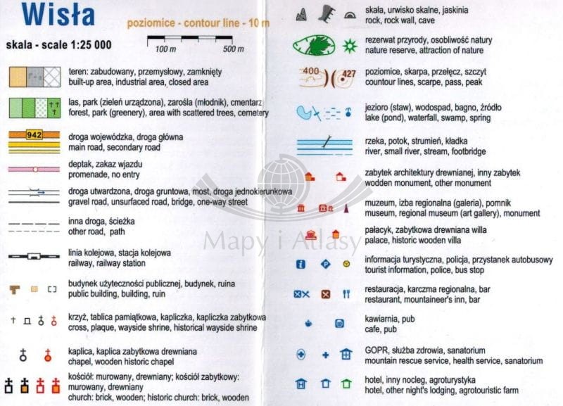 Składana, laminowana mapa turystyczna Wisły i okolic w skali 1:25 000 wydawnictwa Compass.