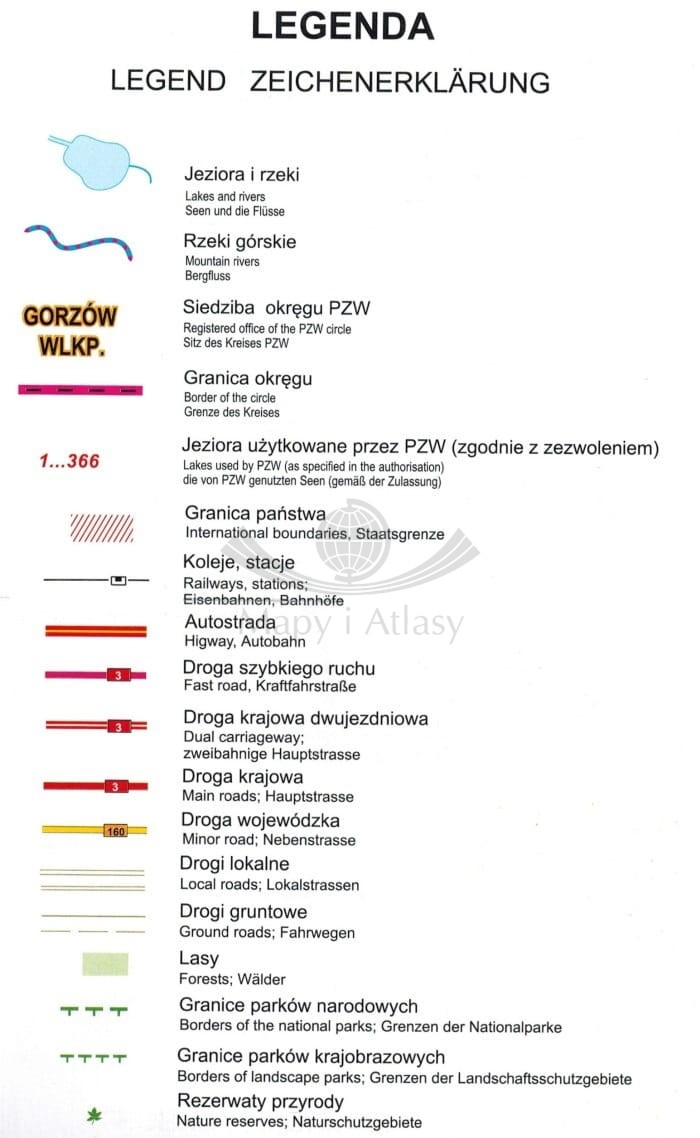 Legenda w języku polskim, angielskim i niemieckim.