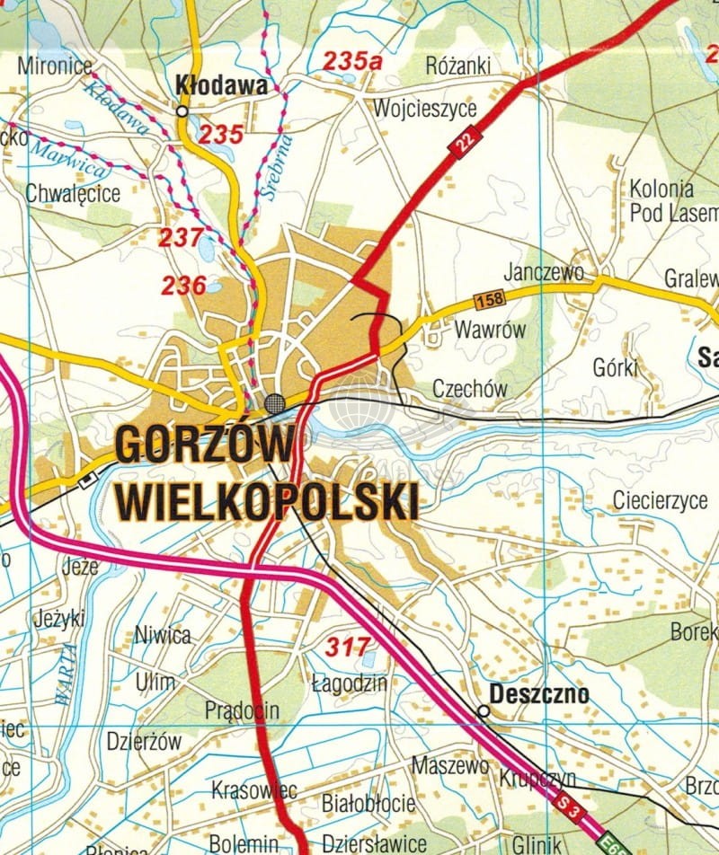 - sieć dróg wraz z ich numeracją,