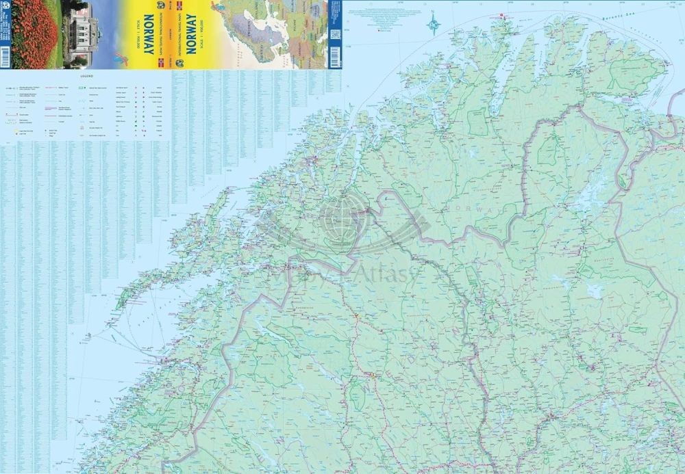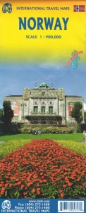Składana, dwustronna, wodoodporna mapa samochodowo-turystyczna Norwegii w skali 1:900 000 wydawnictwa ITMB.