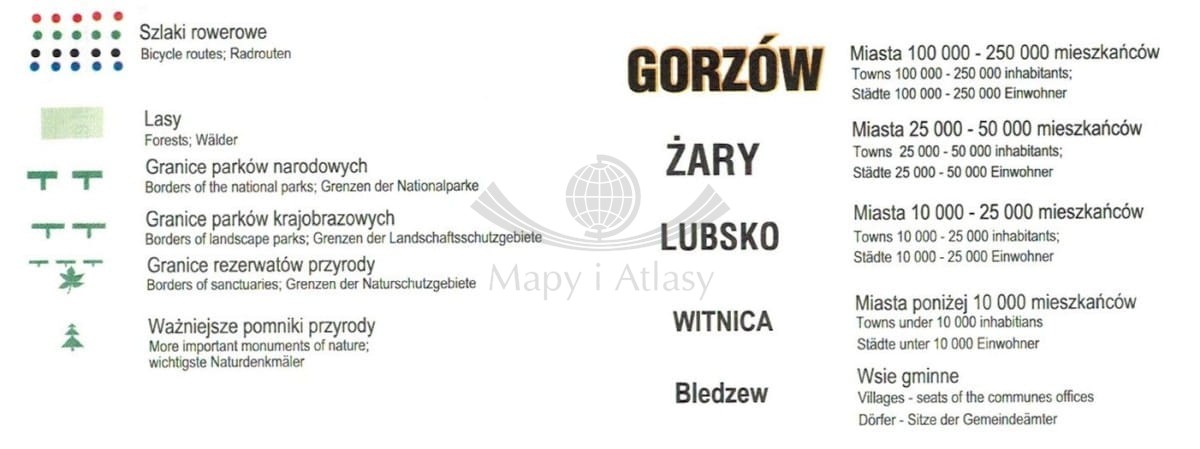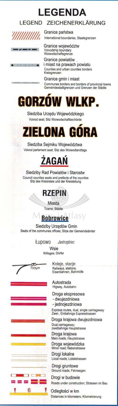 Składana mapa administracyjno-turystyczna województwa lubuskiego w skali 1:200 000. Mapa zawiera m.in.: