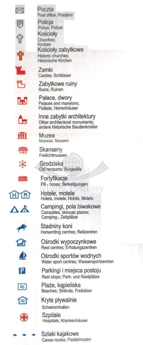- przebieg turystycznych szlaków pieszych i kajakowych,