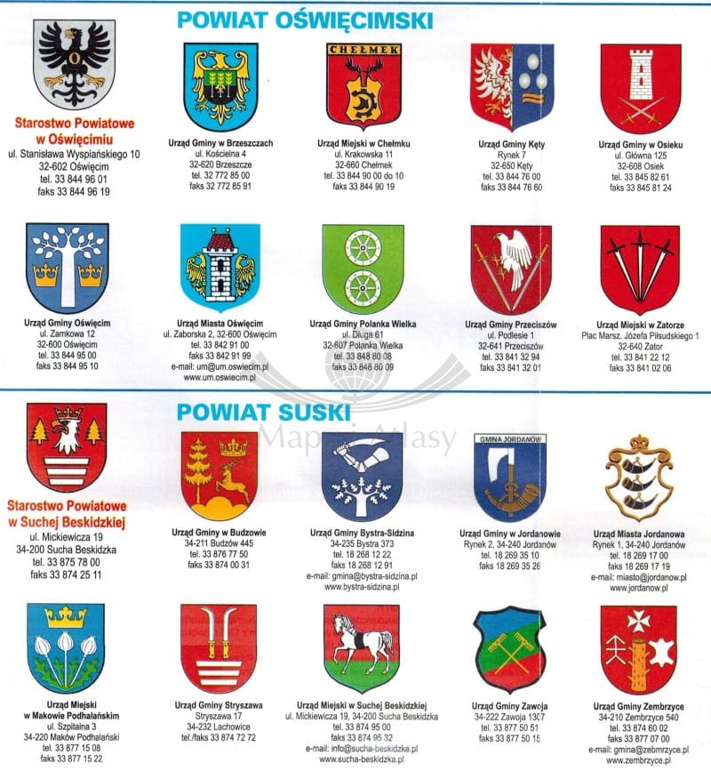 - herby miast, gmin i powiatów,