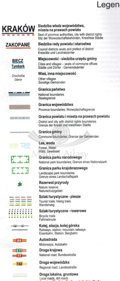 Składana mapa administracyjno-turystyczna województwa małopolskiego w skali 1:250 000. Mapa zawiera m.in.: herby miast, gmin i powiatów, siedziby władz gminnych, powiatowych i wojewódzkich...