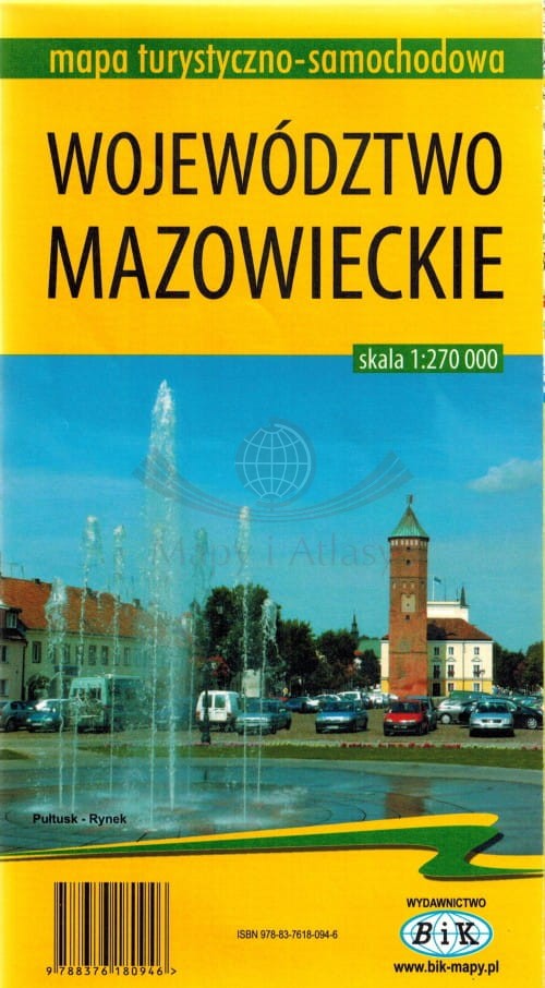 Składana mapa samochodowo-turystyczna województwa mazowieckiego w skali 1:270 000 wydawnictwa Bik.