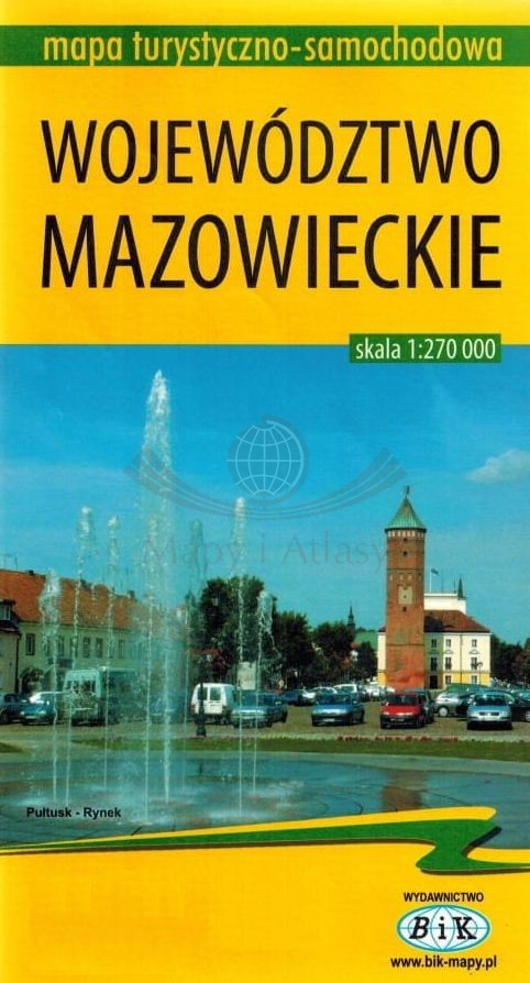 Składana, laminowana mapa samochodowo-turystyczna województwa mazowieckiego w skali 1:270 000 wydawnictwa Bik.
