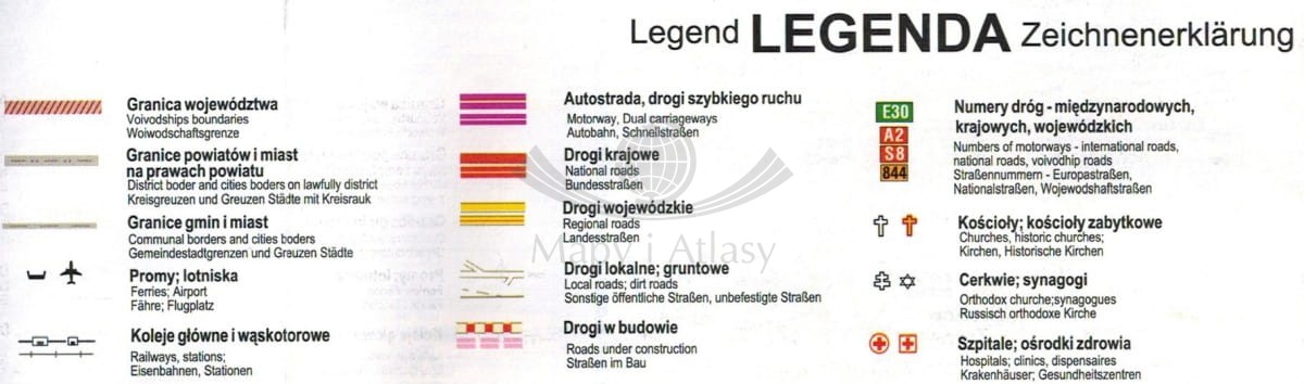 Mapa zawiera m.in.: