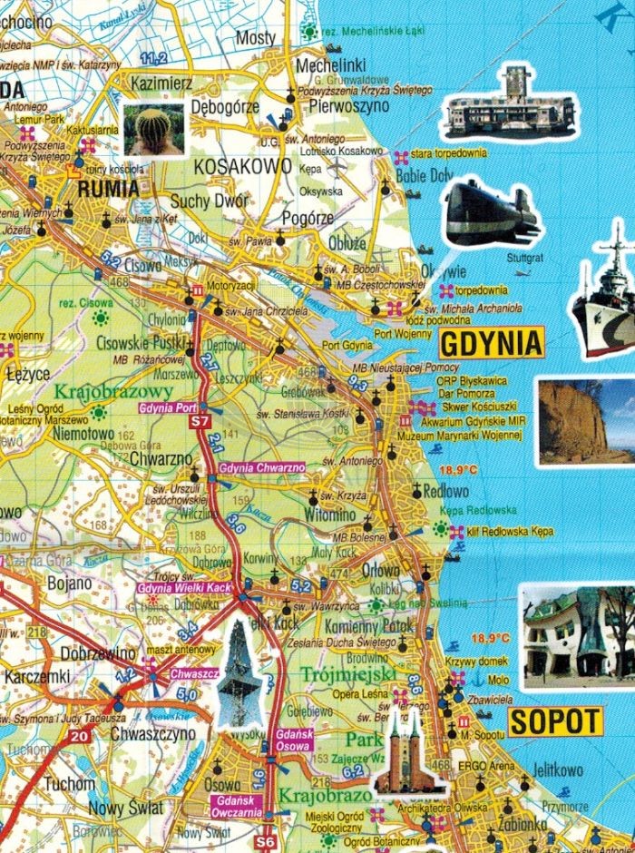 Dodatkowo publikacja zawiera plany miast: Gdynia, Sopot, Gdańsk, Jastrzębia Góra, Łeba, Ustka, Kołobrzeg, Rewal, Niechorze, Międzyzdroje i Świnoujście.