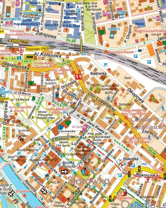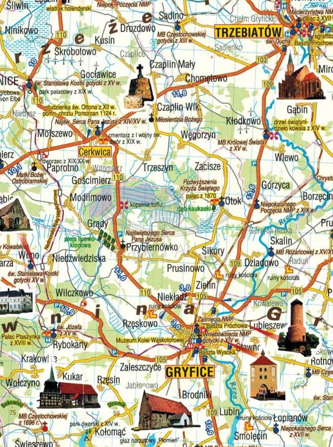 - stacje benzynowe, parkingi, szlaki kajakowe,