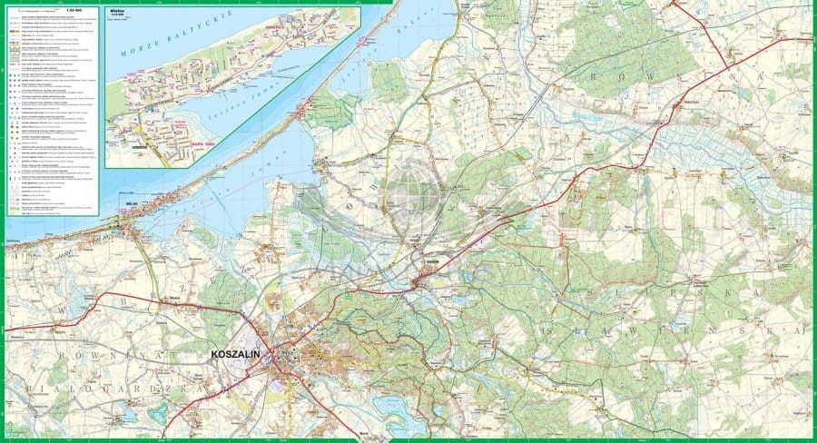 Publikacja zawiera dodatkowo centrum miast: Darłówko w skali 1:12 500 oraz Mielno w skali 1:12 000.