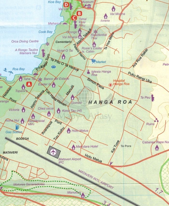 Składana, dwustronna mapa samochodowo-turystyczna Wyspy Wielkanocnej w skali 1:24 200 i Santiago w skali 1:12 500 wydawnictwa ITMB.
