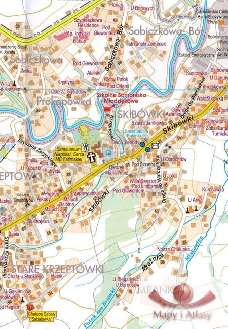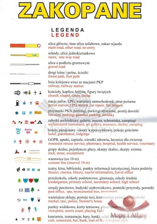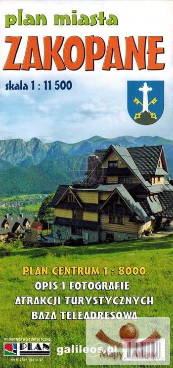 Szczegółowy, składany plan miasta Zakopanego w skali 1:11 500 oraz centrum w skali 1:8 000 wydawnictwa Galileos.