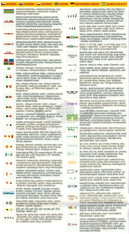 Legenda w języku: polskim, angielskim, niemieckim, czeskim, słowackim oraz węgierskim.